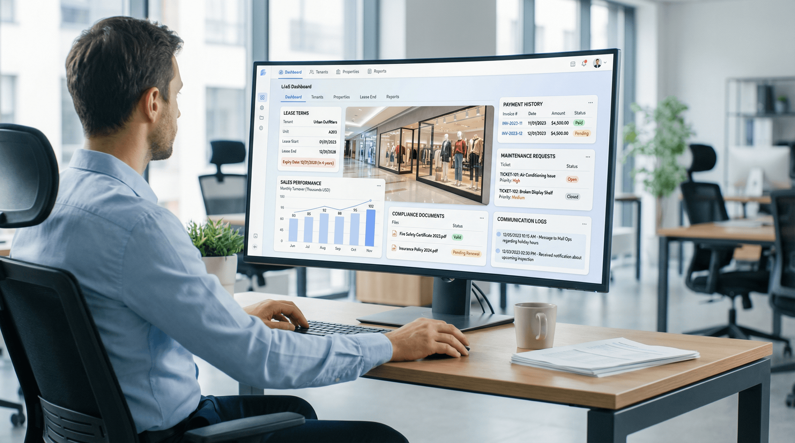 Access complete tenant intelligence- lease terms, payment history, sales performance, maintenance requests, compliance documents, and communication. Logs everything in one platform that improves decision-making and strengthens tenant relationships.